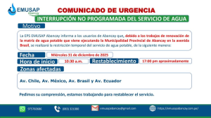 Campaña Publicitaria 18 abril, 2024 Last updated : 29 abril, 2024 emusa7 PROGRAMA EDUCACIÓN SANITARIA-EMUSAP ABANCAYSigue estas recomendaciones para hacer un uso responsable del agua: