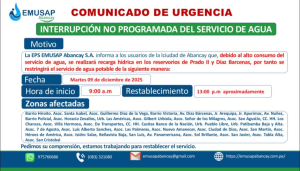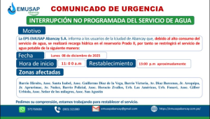 INTERRUPCION PROGRAMADA DEL SERVICIO DE AGUA POTABLE