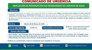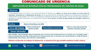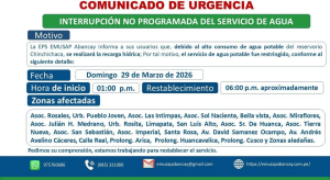 Con la finalidad de eliminar la suciedad, malezas y piedras de la zona donde se encuentra el reservorio, el pasado sábado 22 de febrero del presente año, la brigada de mantenimiento procedió a la limpieza externa del reservorios de agua potable en la Av. Días Bárcenas.