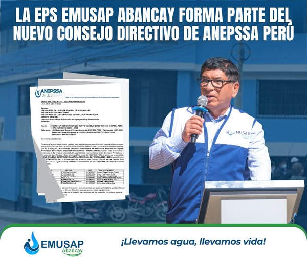 La incorporación de la EPS EMUSAP Abancay a este espacio de representación nacional constituye un importante reconocimiento a su gestión institucional y compromiso con la mejora continua de los servicios de agua potable y saneamiento.