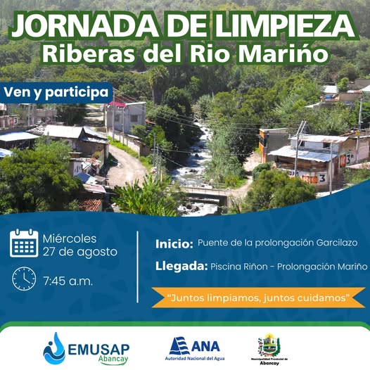 Este miércoles 27 de agosto acompáñanos en la Jornada de Limpieza de las Riberas del Río Mariño.