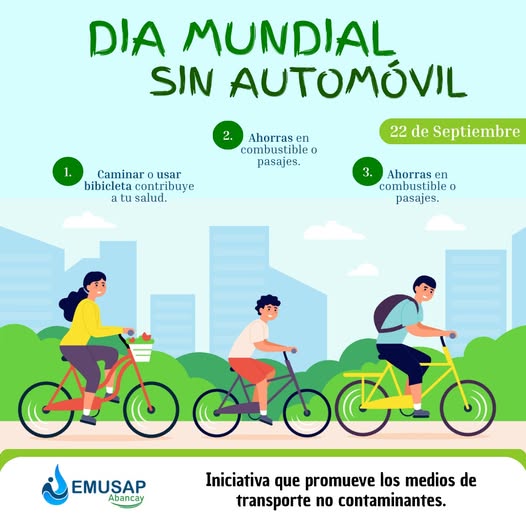 ¡Día Mundial Sin Automóvil! 22 septiembre, 2025 Last updated : 26 septiembre, 2025 emusa7 Hoy nos sumamos a la causa y no usamos automóvil. Te invitamos a dejar este medio de transporte por un día y pruebes nuevos medios de desplazamiento, que aporta grandes beneficios para todos. ¿Cuál es tu medio de transporte favorito?