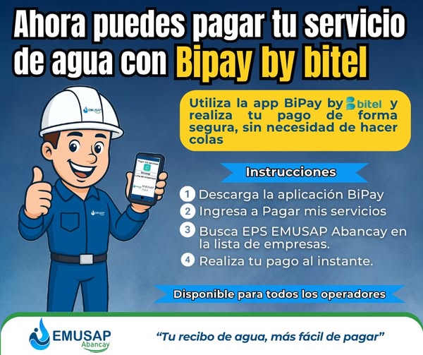 La EPS EMUSAP Abancay pone a tu disposición la app BiPay by Bitel, una forma rápida, segura y sencilla de realizar tus pagos sin necesidad de hacer colas.