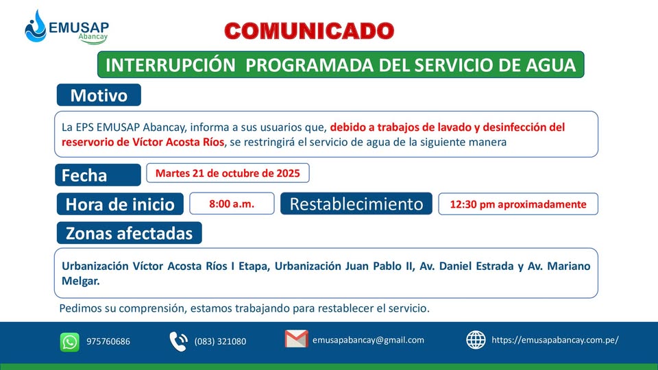 ¡CORTE DEL SERVICIO DE AGUA POTABLE PROGRAMADO ! 16 octubre, 2025 Last updated : 29 octubre, 2025 emusa7