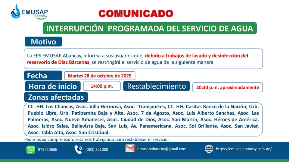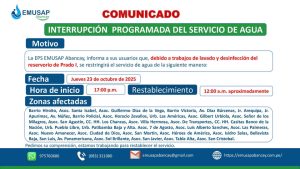 ¡CORTE DEL SERVICIO DE AGUA POTABLE PROGRAMADO ! 24 octubre, 2025 Last updated : 29 octubre, 2025 emusa7