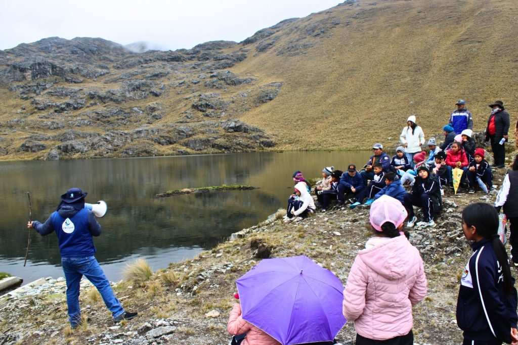 Durante el recorrido, las niñas y niños conocieron de cerca las acciones que realizamos mediante el Mecanismo de Retribución por Servicios Ecosistémicos (MERESE), como la construcción de diques, la forestación de queñuas y la protección de nuestras fuentes hídricas. Además, compartimos con ellos la importancia de Rontoccocha, una de las principales fuentes de abastecimiento de agua para la ciudad de Abancay.