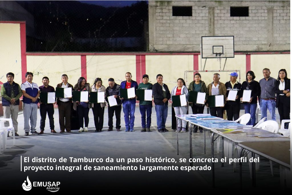 Este sábado 15 de noviembre se informó a la población de Tamburco la culminación satisfactoria del estudio de preinversión a nivel de perfil del proyecto: “Mejoramiento y ampliación del servicio de agua potable urbano y alcantarillado en los sectores Quinta Valverde, Santa Rosa, Cielo Azul, Delfina Duque, Los Ángeles, Maucacalle, Sahuanay, Colcaqui, Verónica y otros del distrito de Tamburco, provincia de Abancay, departamento de Apurímac”.