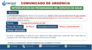 Con el propósito de fortalecer la gestión integral del recurso hídrico, mejorar nuestra capacidad de respuesta ante eventos climáticos y garantizar un servicio de agua potable seguro, continuo y sostenible para la población de Abancay y Tamburco, venimos ejecutando la obra del Sistema de Alerta Temprana (SAT) ante déficit hídrico y lluvias intensas en la […]