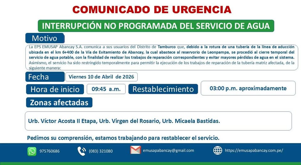 ¡ Atentos con el siguiente comunicado de Urgencia!
