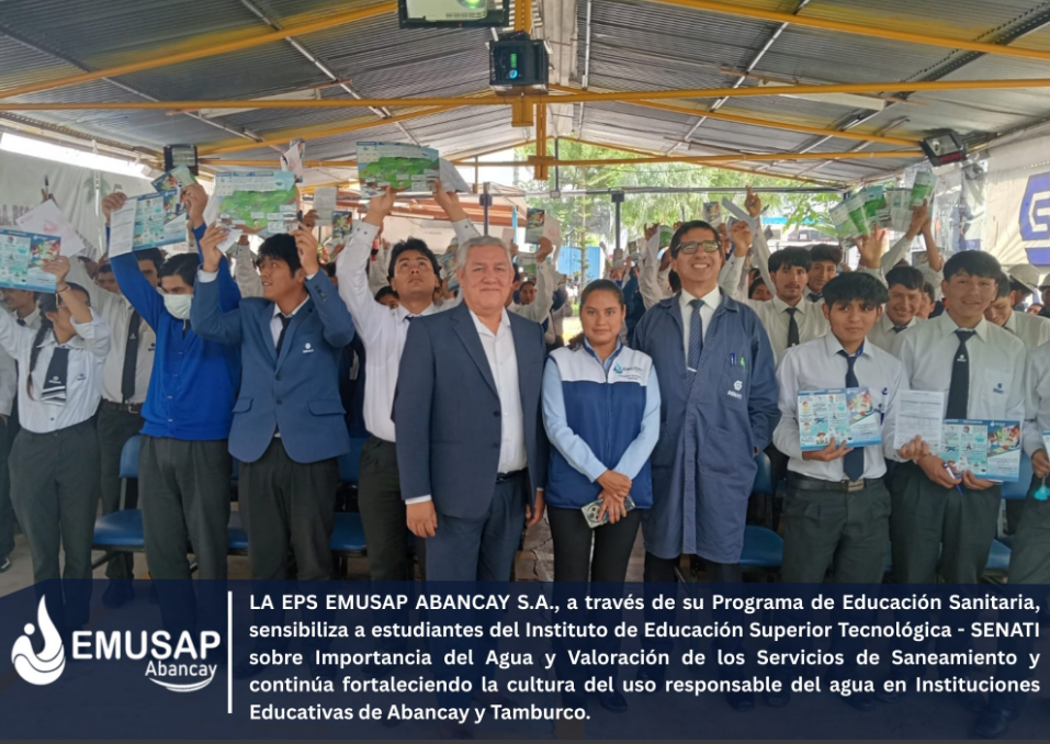 LA EPS EMUSAP ABANCAY S.A., A TRAVÉS DE SU PROGRAMA DE EDUCACIÓN SANITARIA, SENSIBILIZA A ESTUDIANTES DEL INSTITUTO DE EDUCACIÓN SUPERIOR TECNOLÓGICA - SENATI SOBRE IMPORTANCIA DEL AGUA Y VALORACIÓN DE LOS SERVICIOS DE SANEAMIENTO Y CONTINÚA FORTALECIENDO LA CULTURA DEL USO RESPONSABLE DEL AGUA EN INSTITUCIONES EDUCATIVAS DE ABANCAY Y TAMBURCO.