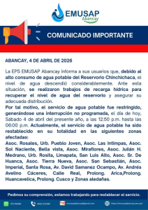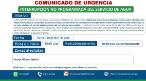 ¡CORTE DEL SERVICIO DE AGUA POTABLE PROGRAMADO !New!!
